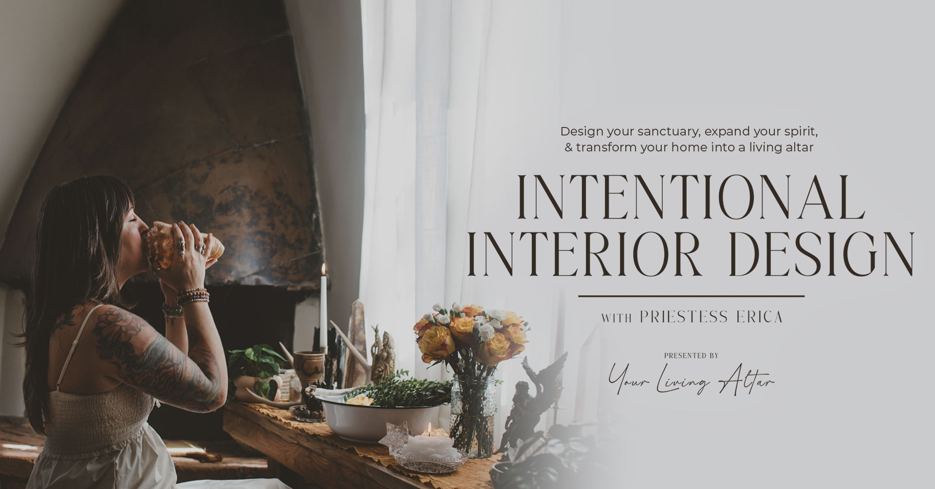 Erica is rooted in the Munay Ki Lineage as a Priestess guiding women through inner recalibration and in-home transformation. Through Your Living Altar, she integrates shamanic healing, Karuna Reiki®, and intentional interior refinement to restore steadiness within the body and coherence within the home. She supports women entering deeper soul work who are ready to bring structure, clarity, and sacred order to their lives and living spaces, allowing the home to reflect their spiritual expansion.
